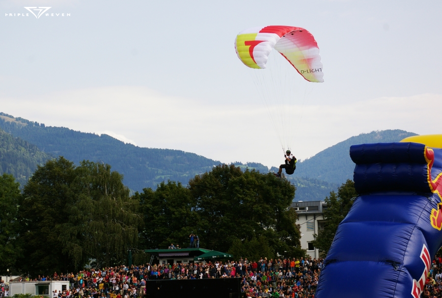 Triple Seven pilot Pele Fassbender was competing in his 16th Dolomitenmann this year, and chose to fly a “normal” paraglider rather than a miniwing this time around; a Triple Seven D-light. “When it comes to absolute top speed I obviously couldn’t keep up with the Tonkas and similar wings, but the launching is impeccable and the wing is light – something that makes a lot of difference when I’m running up for the 2. Flight.”