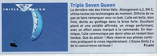 In Parapente Mag they made a small comment about the Queen that they where flying. Translated from the issue number 154: