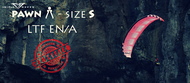 We are happy to announce that Pawn S size is now certified also in EN/A class. By that we have all main sizes certified and the path from school to cloudbase is now open also to lighter pilots.