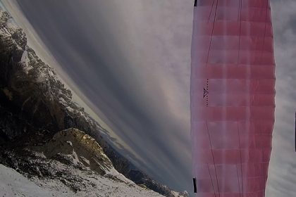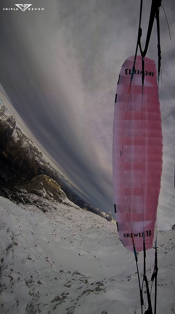 North side of Sella Nevea got enough snow to get the skis out and take Skewer for a speed fly down the slope. Guys made their white Christmas day in style.